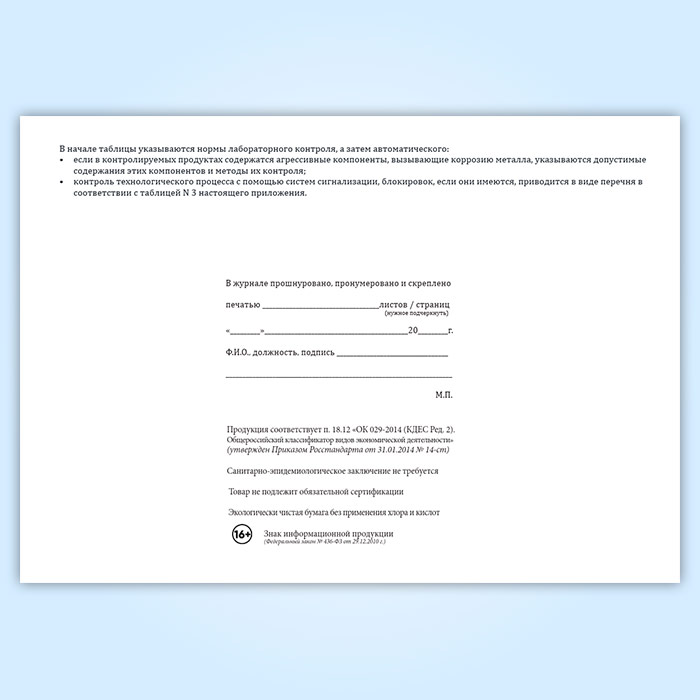 Вы получаете печатную продукцию прошнурованной и c местом для вашей печати в соответствии с действующими нормативными документами:
