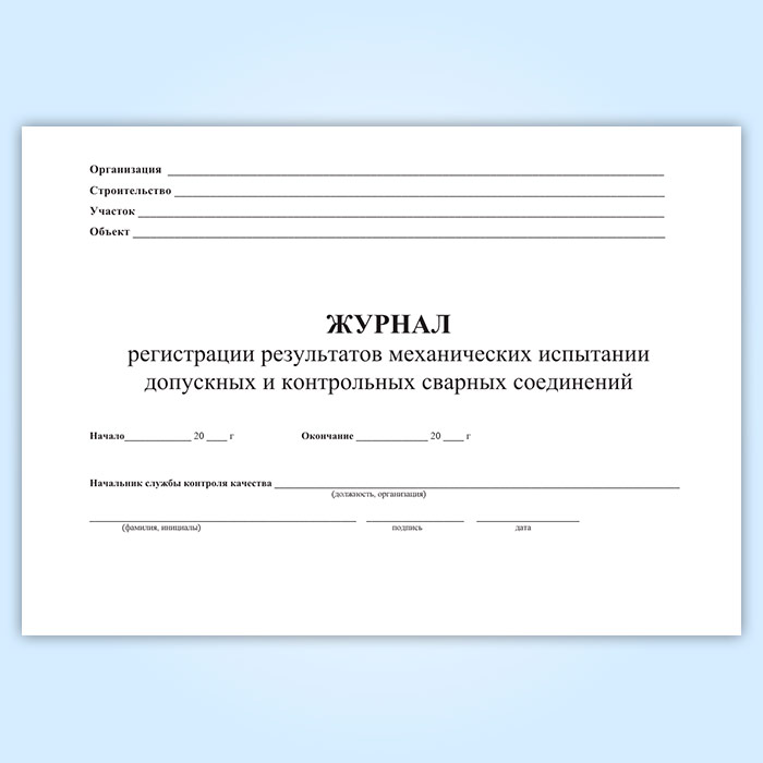 Журнал регистрации результатов механических испытаний допускных и контрольных сварных соединений в Сургуте купить
