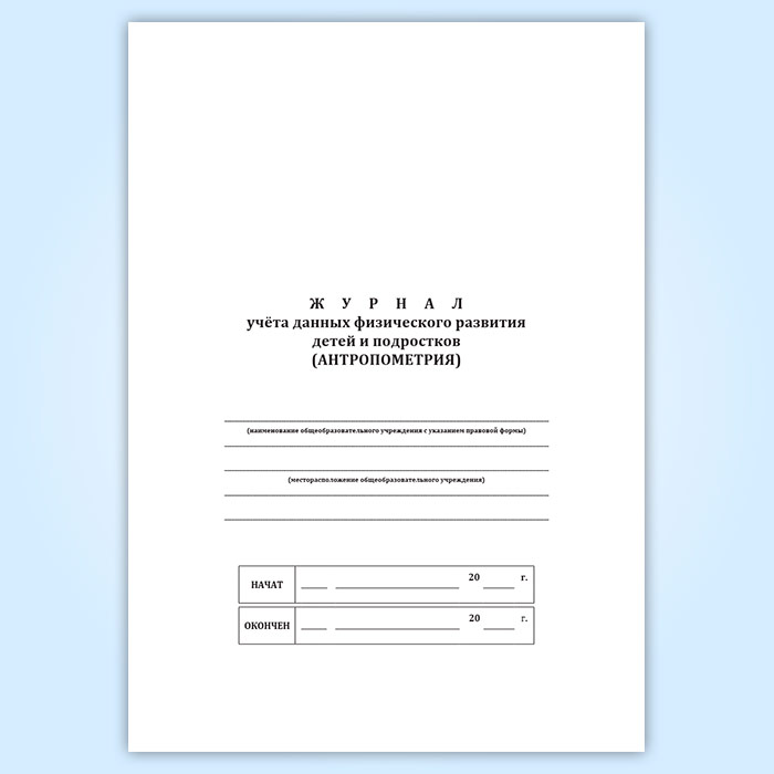 Журнал учета данных физического развития детей и подростков (антропометрия) в Сургуте купить
