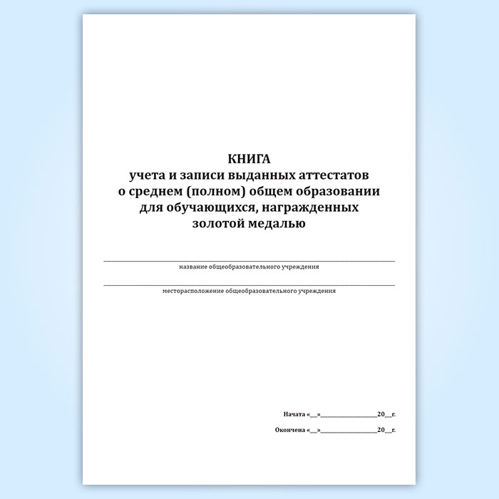 Книга учета и записи выданных аттестатов о среднем (полном) общем образовании для обучающихся, награжденных золотой медалью в Сургуте купить