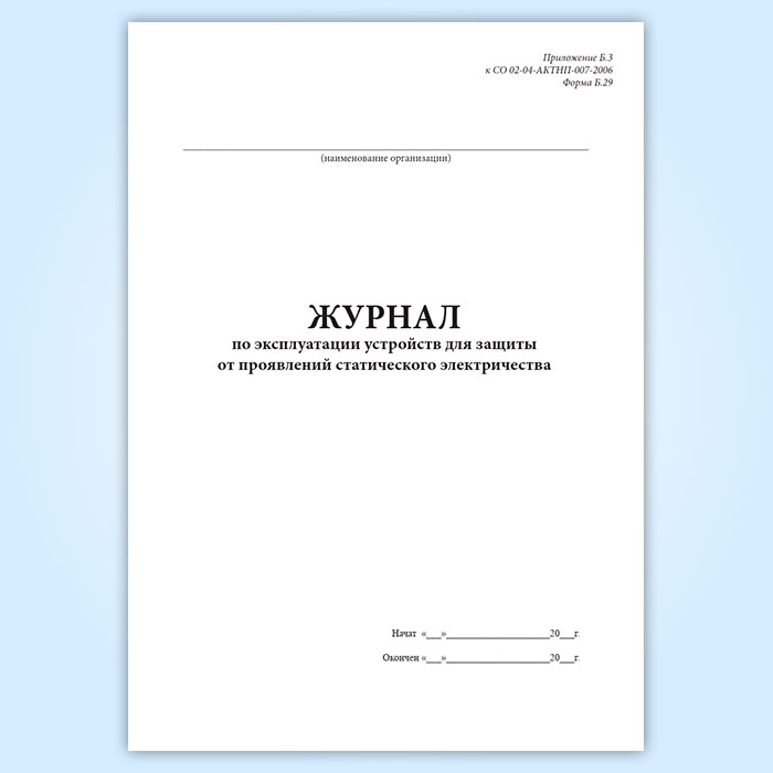 Журнал по эксплуатации устройств для защиты от проявлений статического электричества (форма Б.29) в Сургуте купить