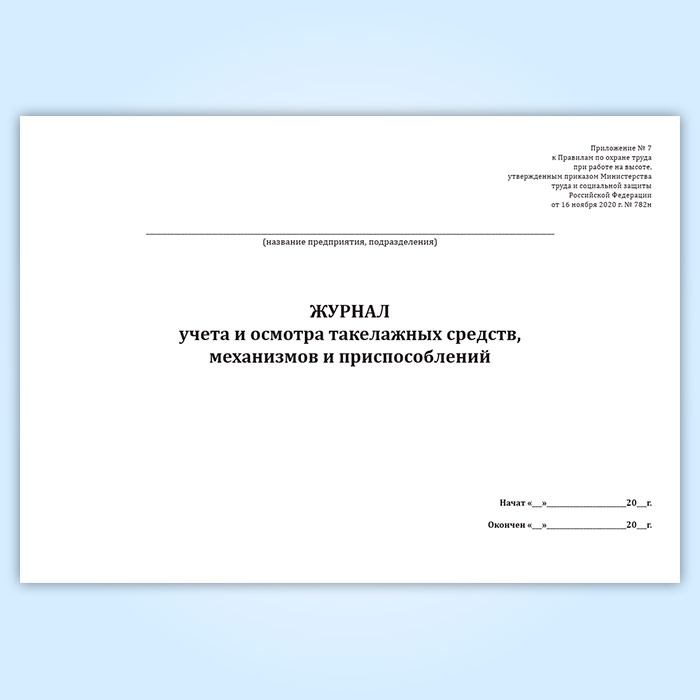 Журнал учета и осмотра такелажных средств, механизмов и приспособлений (Приказ Минтруда России от 16.11.2020 N 782н) в Сургуте купить