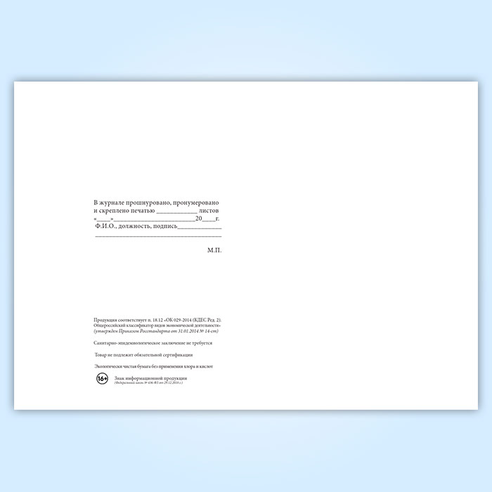 Вы получаете печатную продукцию прошнурованной и c местом для вашей печати в соответствии с действующими нормативными документами: