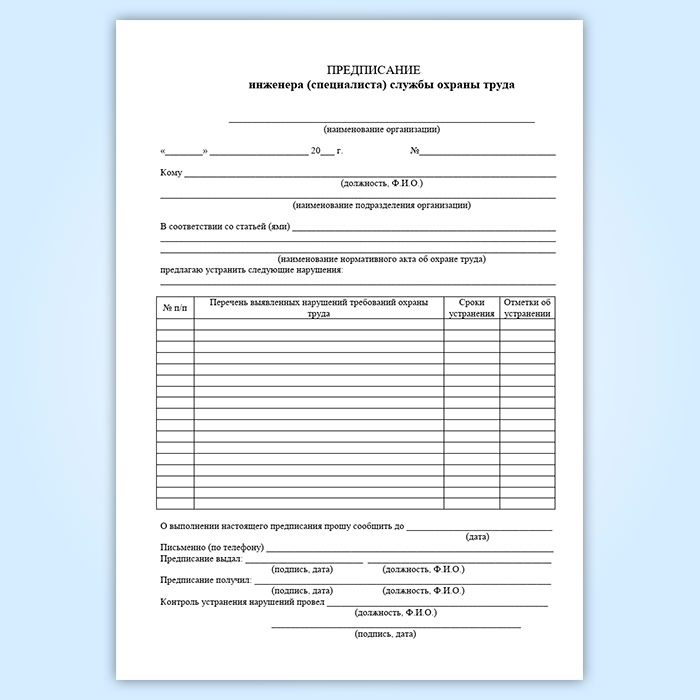 Журнал учета выдачи предписаний инженера (специалиста) службы охраны труда в Сургуте купить