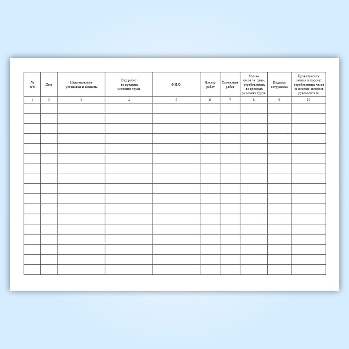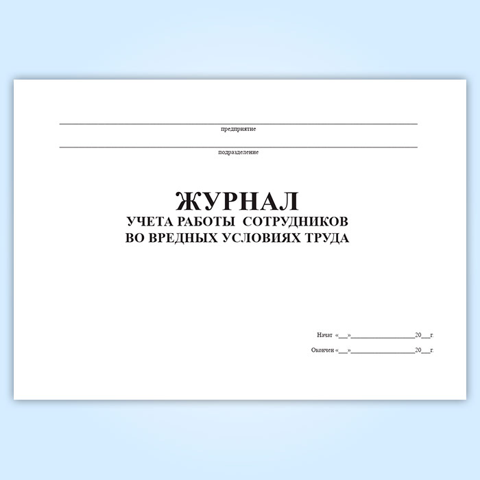 Журнал учета работы сотрудников во вредных условиях труда в Сургуте купить