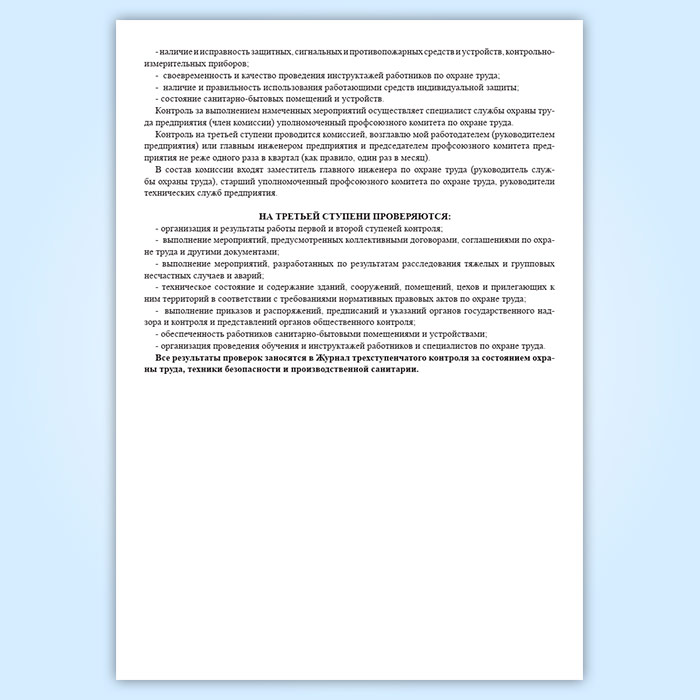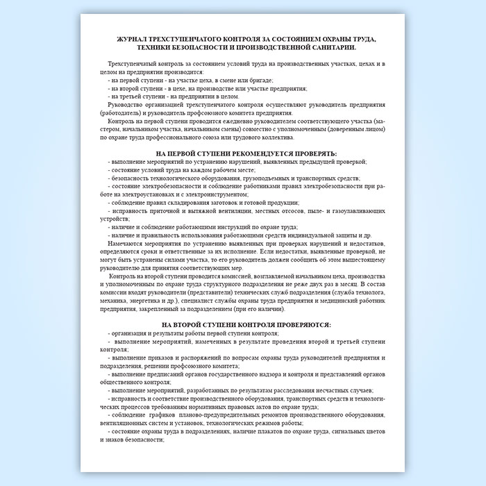 Журнал трехступенчатого контроля за состоянием охраны труда, техники безопасности и производственной санитарии 1 и 2 ступени в Сургуте купить