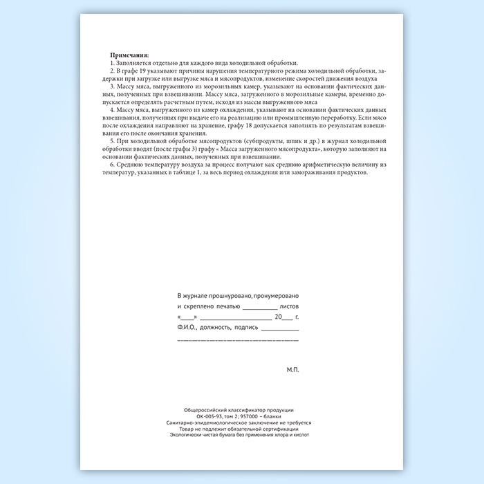 Журнал холодильной обработки мяса и мясопродуктов в камерах охлаждения и замораживания в Сургуте купить