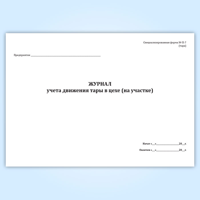 Журнал учета движения тары в цехе (форма П-7 тара) в Сургуте купить