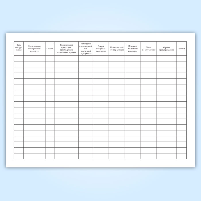 Журнал учета посторонних предметов и включений, обнаруженных в сырье, продукции на производственных участках в Сургуте купить