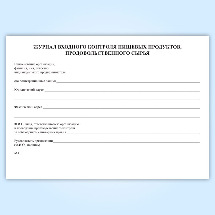 Журнал входного контроля пищевых продуктов, продовольственного сырья (бракеражный журнал поступающих на пищеблок продуктов) в Сургуте купить