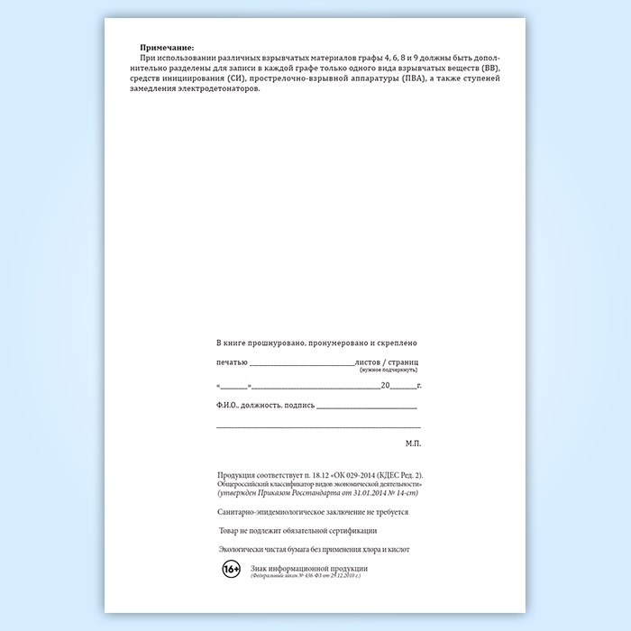 Книга учета выдачи и возврата взрывчатых материалов в Сургуте купить