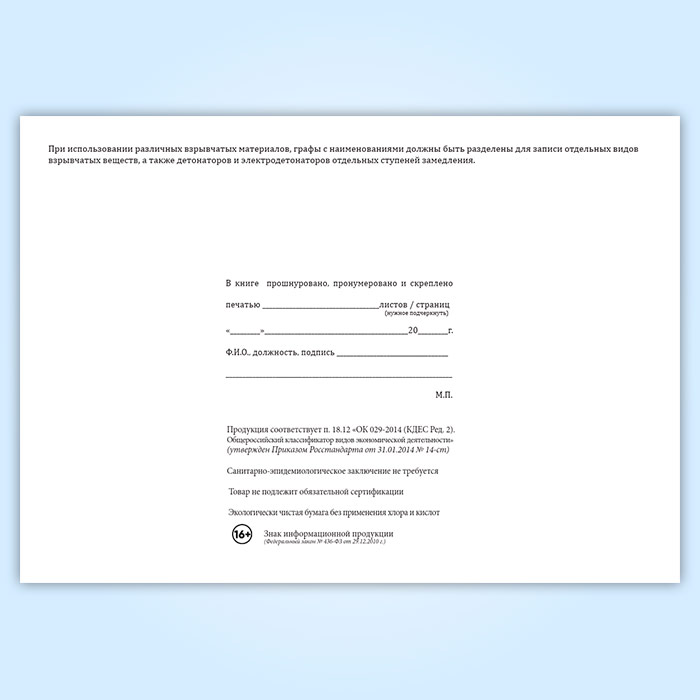 Книга учета прихода и расхода взрывчатых материалов участкового пункта хранения ВМ в Сургуте купить