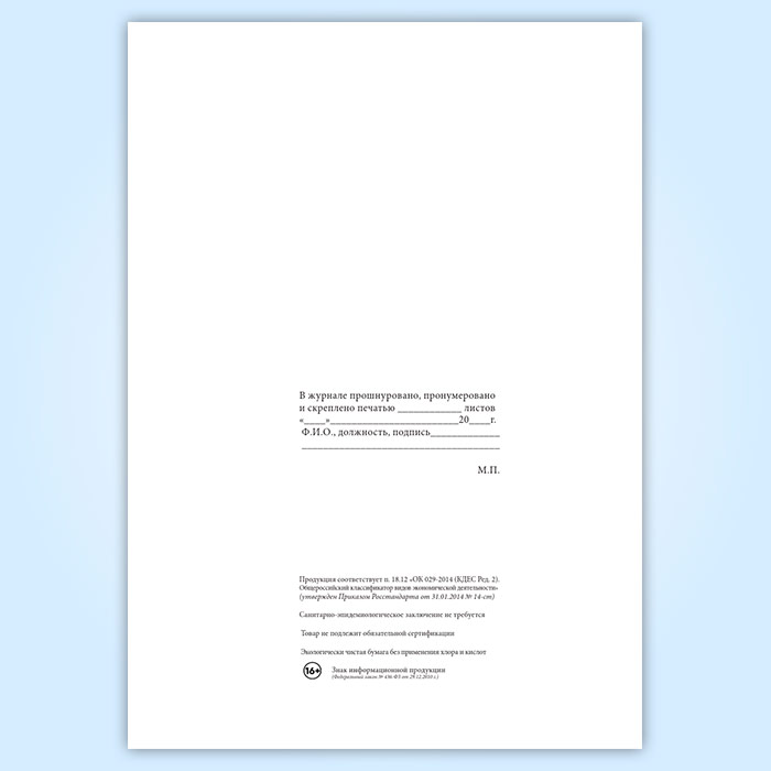 Вы получаете печатную продукцию прошнурованной и c местом для вашей печати в соответствии с действующими нормативными документами: