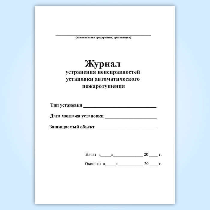 Журнал устранения неисправностей установки автоматического пожаротушения в Сургуте купить