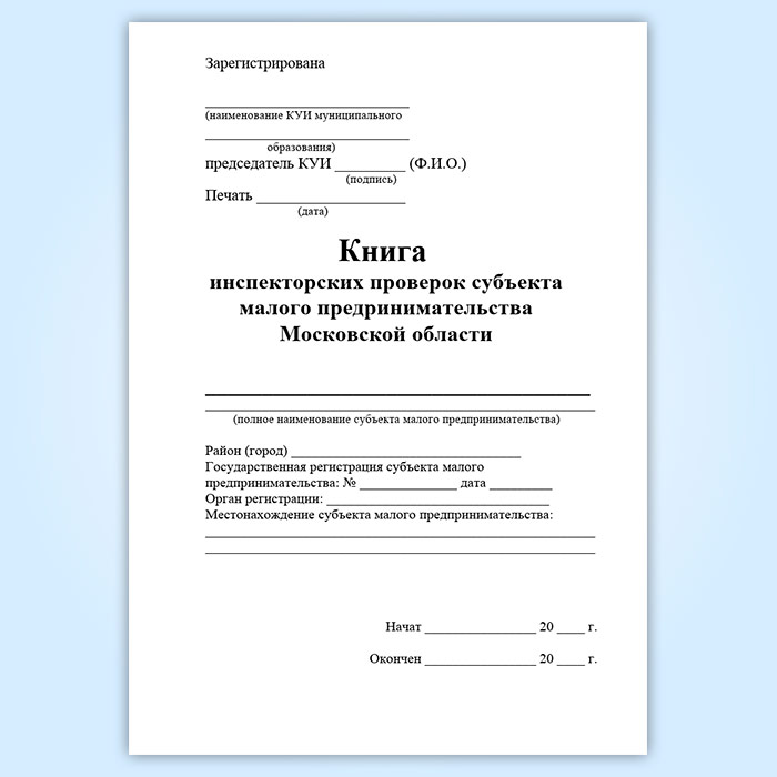 Книга инспекторских проверок субъекта малого предпринимательства Московской области в Сургуте купить