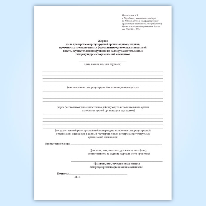 Журнал учета проверок саморегулируемой организации оценщиков, проводимых уполномоченным федеральным органом исполнительной власти, осуществляющим функции по надзору за деятельностью саморегулируемых организаций оценщиков в Сургуте купить