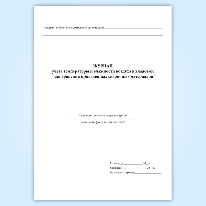 Журнал учета температуры и влажности воздуха в кладовой для хранения прокаленных сварочных материалов в Сургуте купить