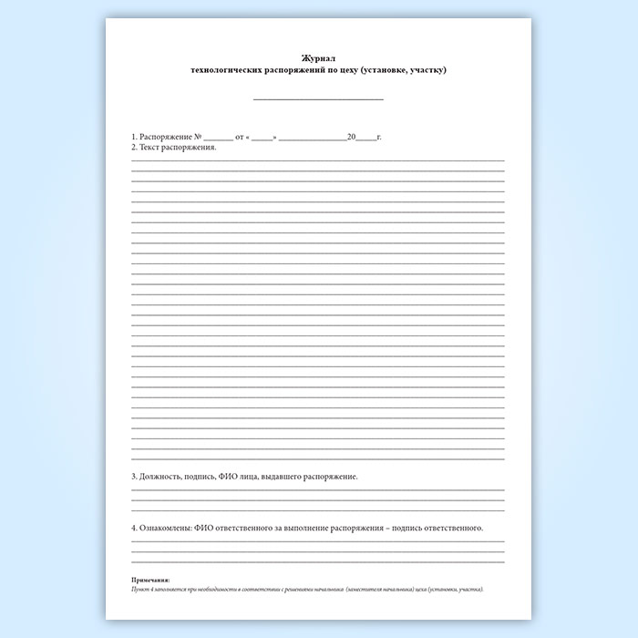 Журнал технологических распоряжений по цеху (установке, участку) в Сургуте купить