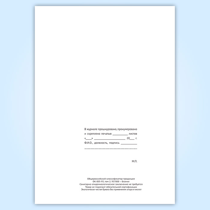 Вы получаете печатную продукцию прошнурованной и c местом для вашей печати в соответствии с действующими нормативными документами: