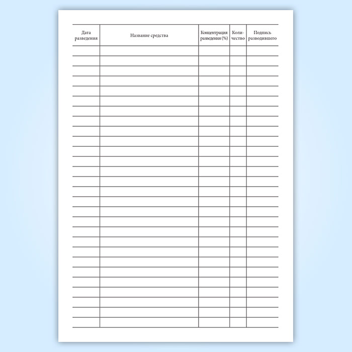 Журнал регистрации разведения моющих и дезинфицирующих средств в Сургуте купить