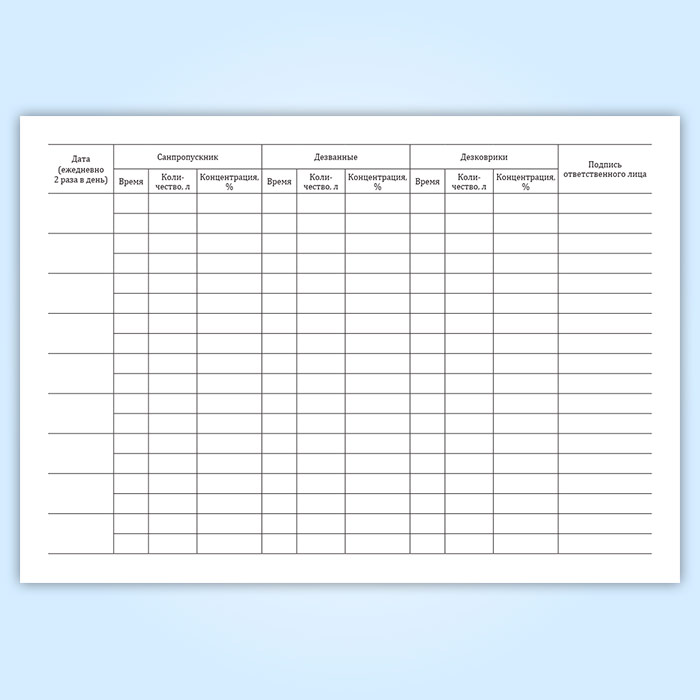 Журнал контроля замены дезсредства в санпропускнике, дезванных и дезковриках в Сургуте купить