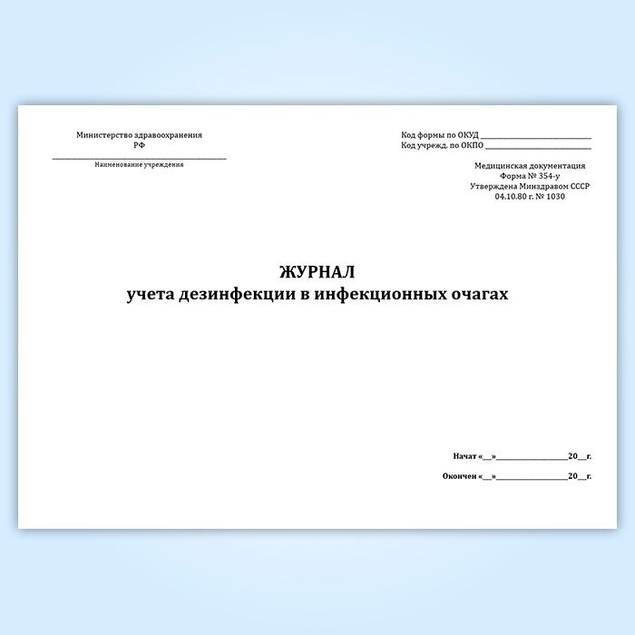 Журнал учета дезинфекции в инфекционных очагах (форма 354/у) в Сургуте купить