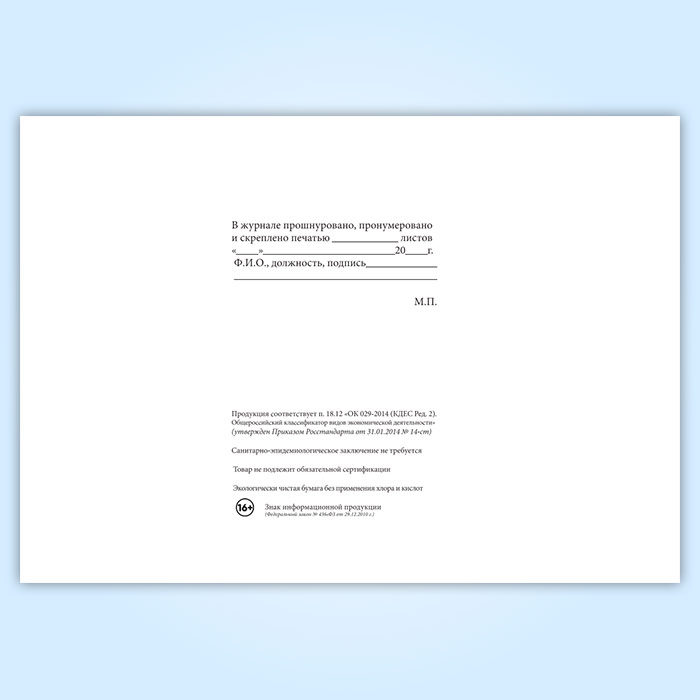 Вы получаете печатную продукцию прошнурованной и c местом для вашей печати в соответствии с действующими нормативными документами: