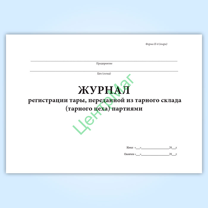 Журнал регистрации тары, переданной из тарного склада (тарного цеха) партиями (форма № П-4 тара) в Сургуте купить