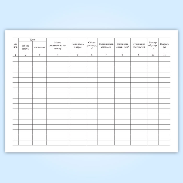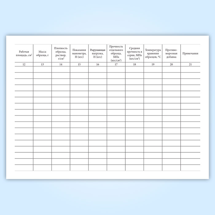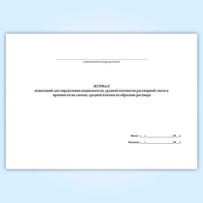 Журнал испытаний для определения подвижности, средней плотности растворной смеси и прочности на сжатие, средней плотности образцов раствора в Сургуте купить