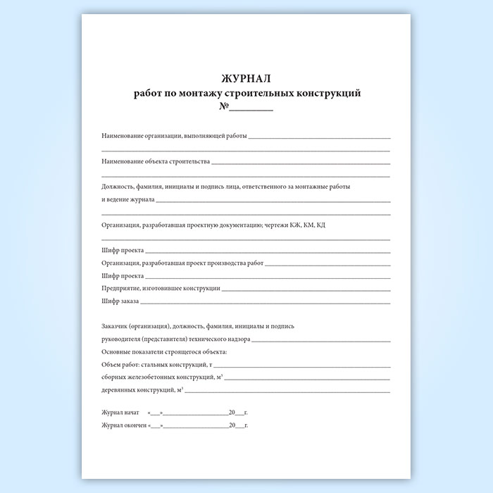 Журнал работ по монтажу строительных конструкций в Сургуте купить