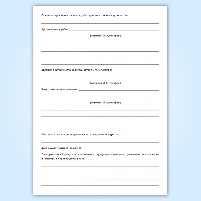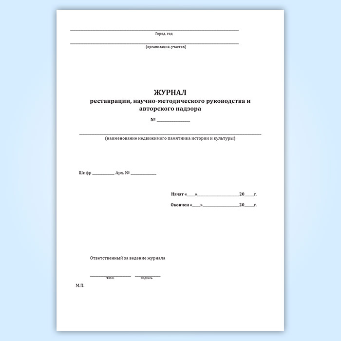 Журнал реставрации, научно-методического руководства и авторского надзора в Сургуте купить