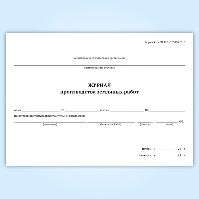 Журнал производства земляных работ (форма 5.1) в Сургуте купить