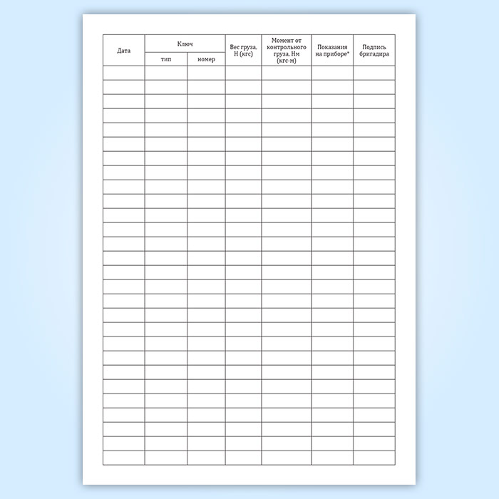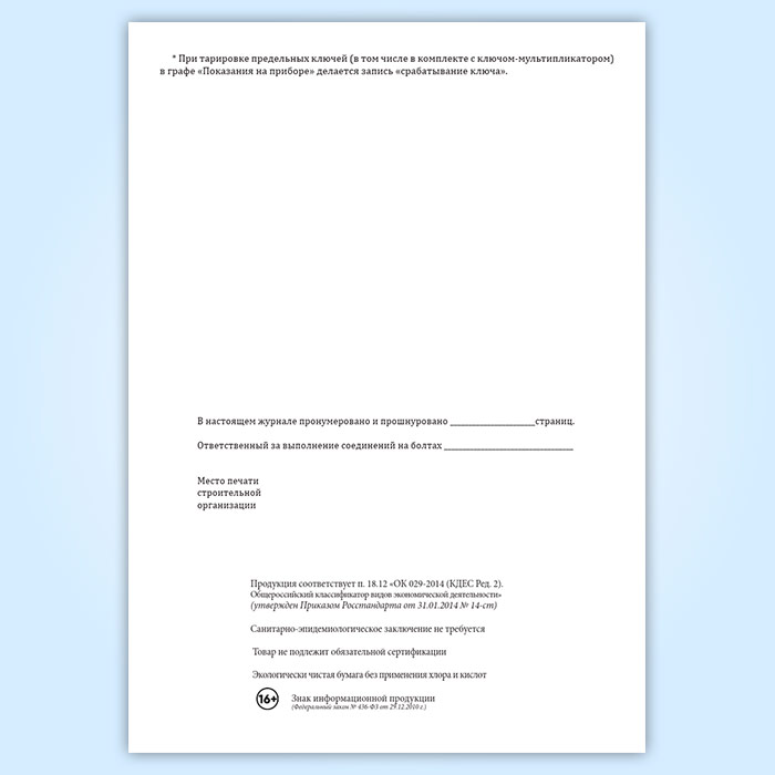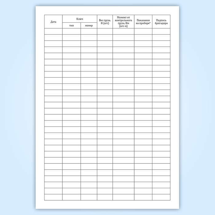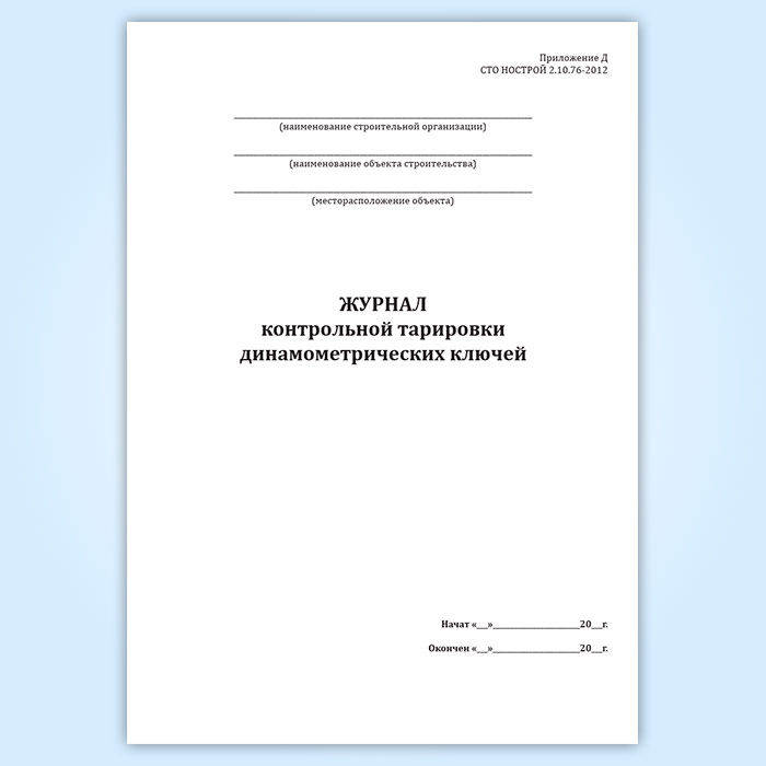Журнал контрольной тарировки динамометрических ключей (СТО НОСТРОЙ 2.10.76-2012) в Сургуте купить