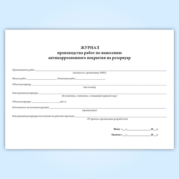 Журнал производства работ по нанесению антикоррозионного покрытия на резервуар в Сургуте купить