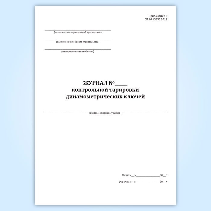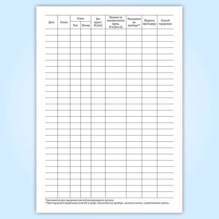 Журнал контрольной тарировки динамометрических ключей в Сургуте купить