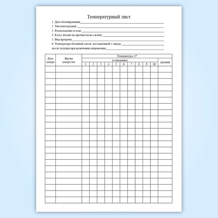 Журнал ухода за бетоном (с графиком продолжительности твердения) в Сургуте купить