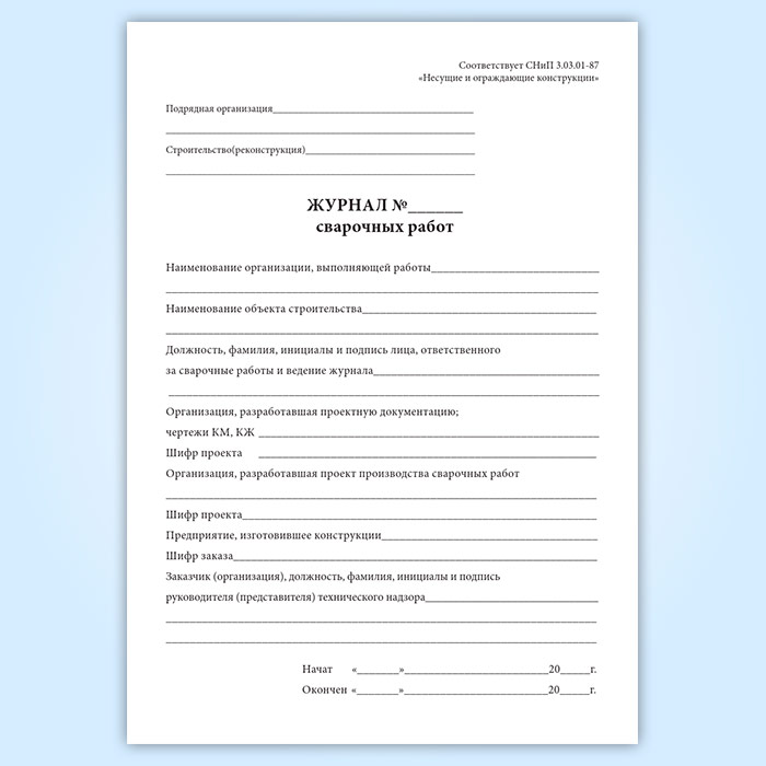 Журнал сварочных работ (СНиП 30301-87) в Сургуте купить