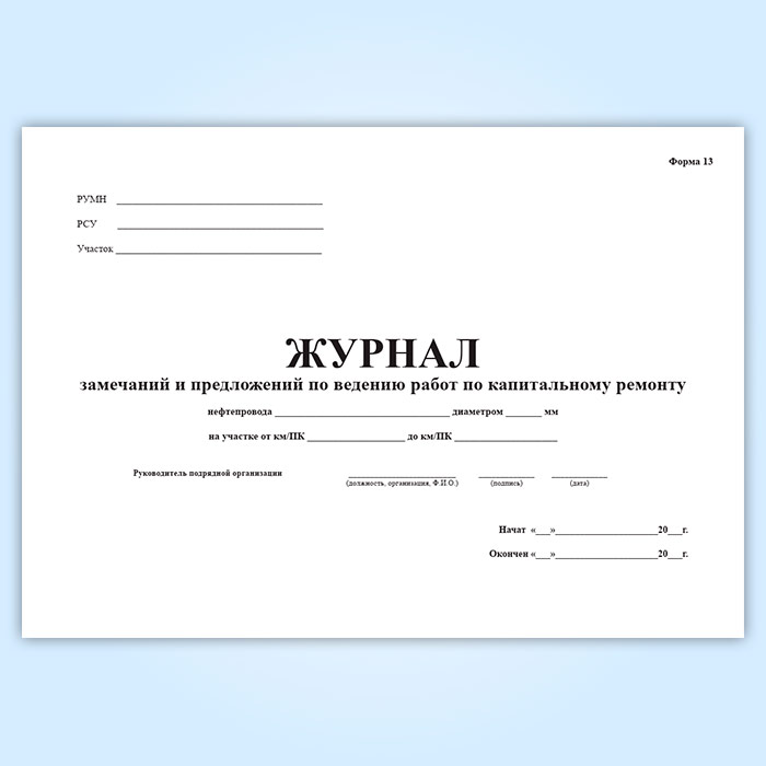 Журнал замечаний и предложений по ведению работ по капитальному ремонту в Сургуте купить