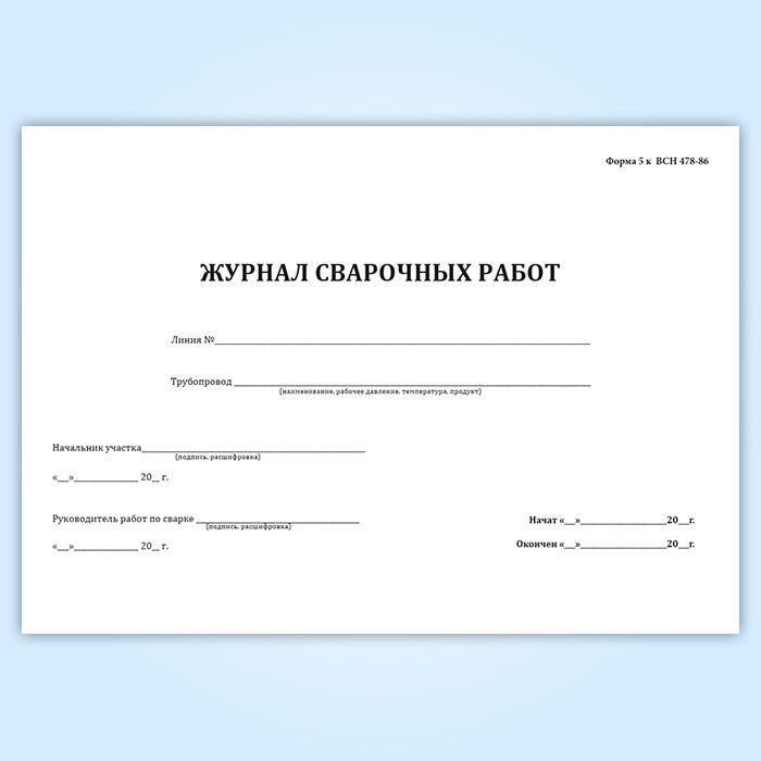 Журнал сварочных работ (ВСН 478-86) в Сургуте купить
