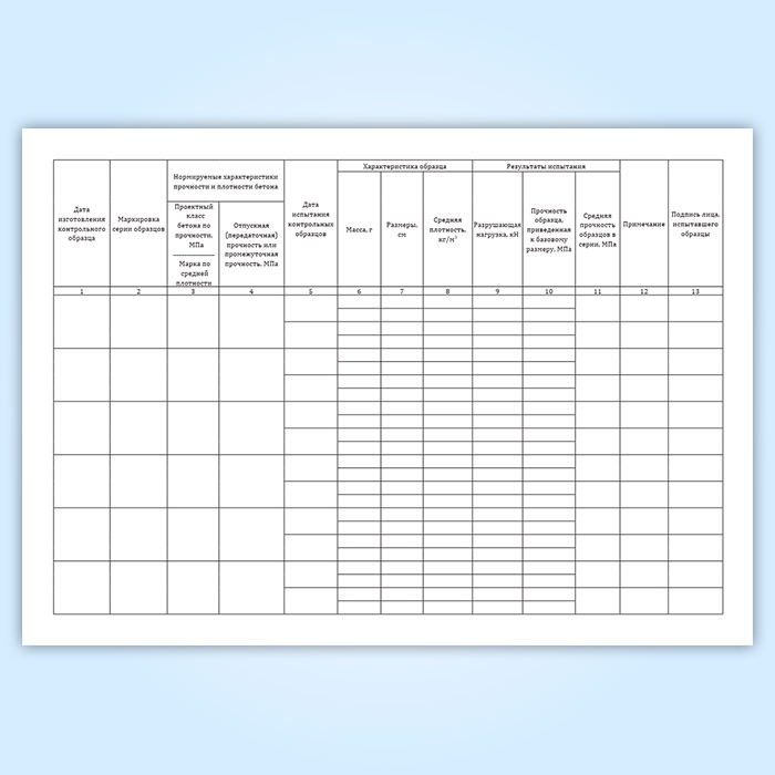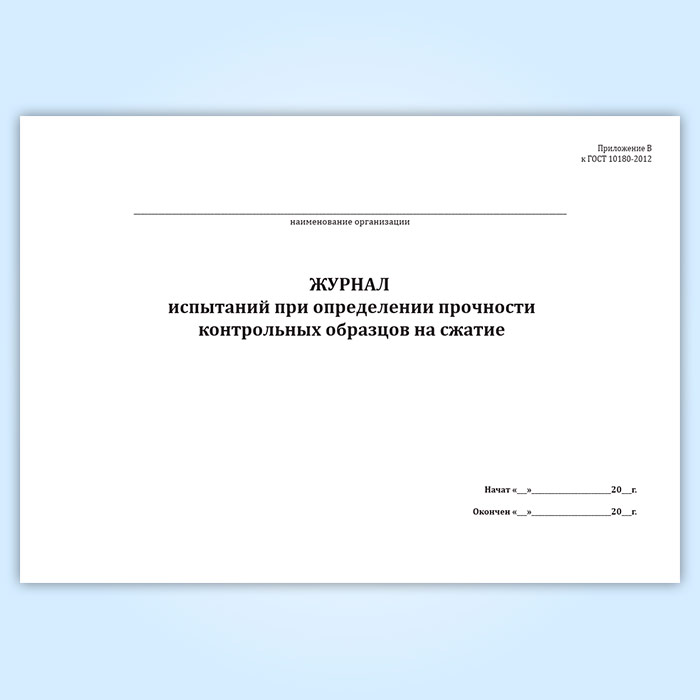 Журнал испытаний при определении прочности контрольных образцов на сжатие в Сургуте купить