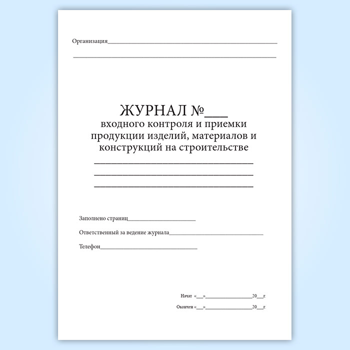 Журнал входного контроля и приемки продукции, изделий, материалов и конструкций на строительстве в Сургуте купить