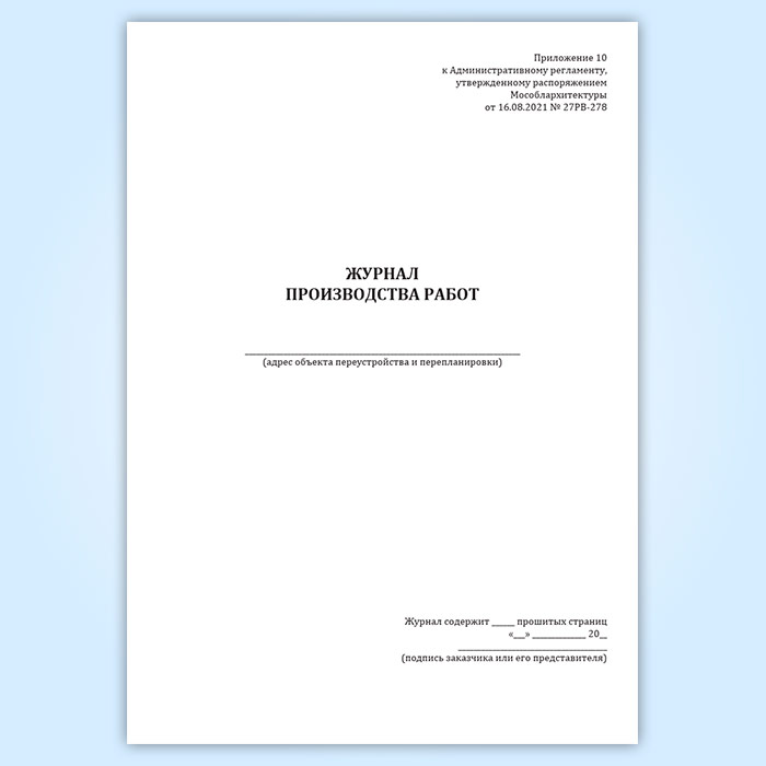 Журнал производства работ (Распоряжение Мособлархитектуры МО от 16.08.2021 N 27РВ-278) в Сургуте купить