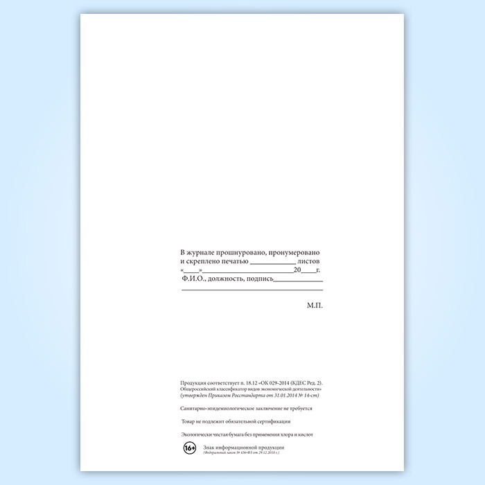 Вы получаете печатную продукцию прошнурованной и c местом для вашей печати в соответствии с действующими нормативными документами: