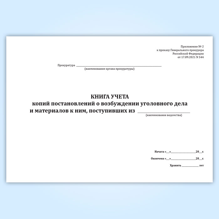 Книга учета копий постановлений о возбуждении уголовного дела и материалов к ним в Сургуте купить