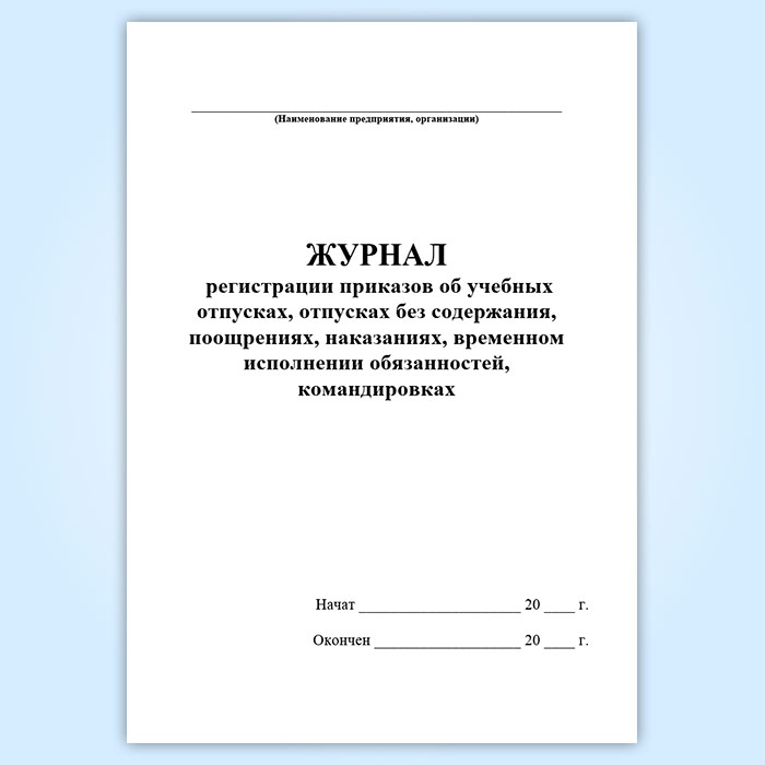 Журнал регистрации приказов об учебных отпусках, отпусках без содержания, поощрениях, наказаниях, временном исполнении обязанностей, командировках в Сургуте купить