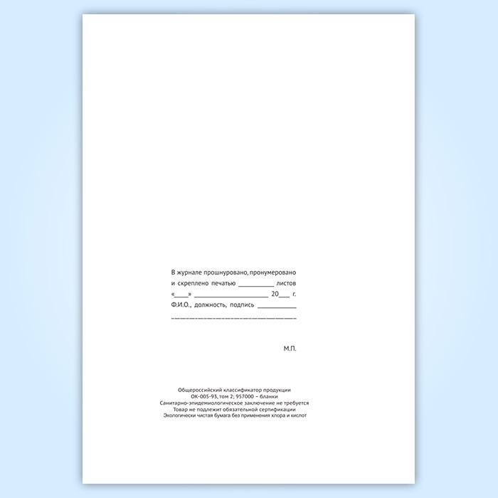 Вы получаете печатную продукцию прошнурованной и c местом для вашей печати в соответствии с действующими нормативными документами: