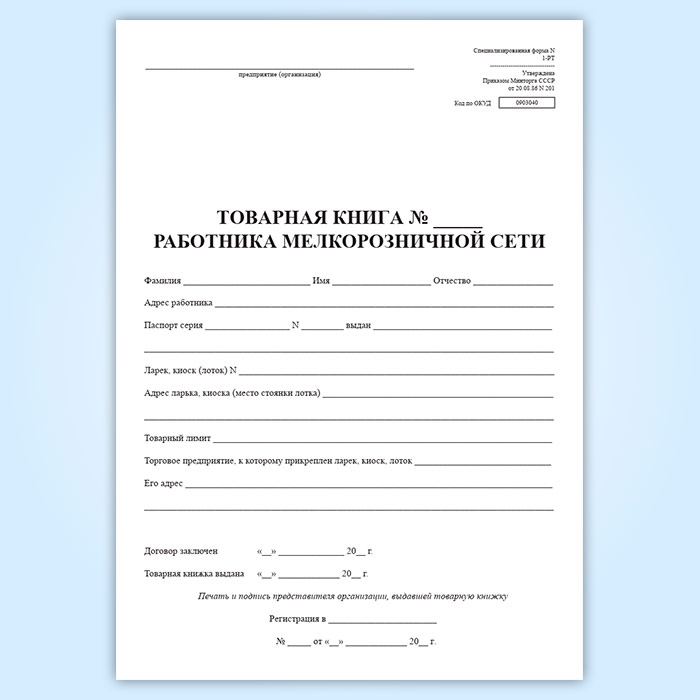Товарная книга работника мелкорозничной сети. Специализированная (форма № 1-РТ) в Сургуте купить