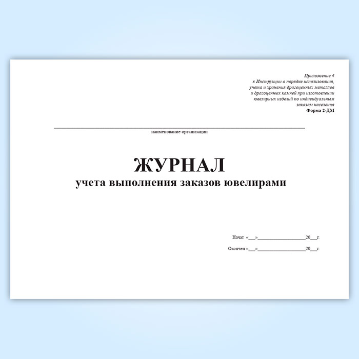 Журнал учета выполнения заказов ювелирами (форма 2-ДМ) в Сургуте купить
