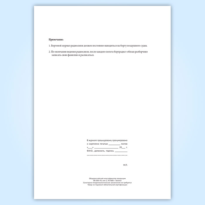 Бортовой журнал радиосвязи воздушного судна авиапредприятия в Сургуте купить