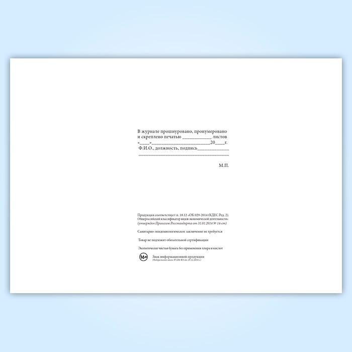Вы получаете печатную продукцию прошнурованной и c местом для вашей печати в соответствии с действующими нормативными документами: